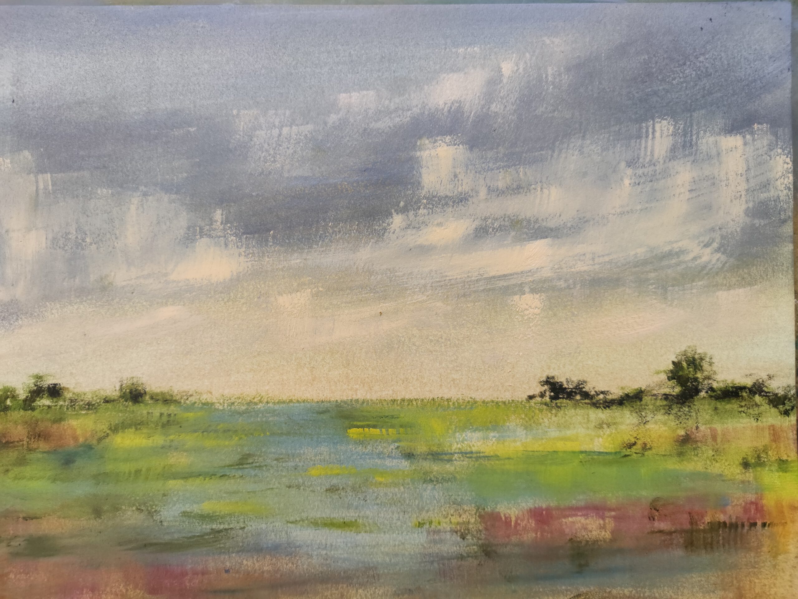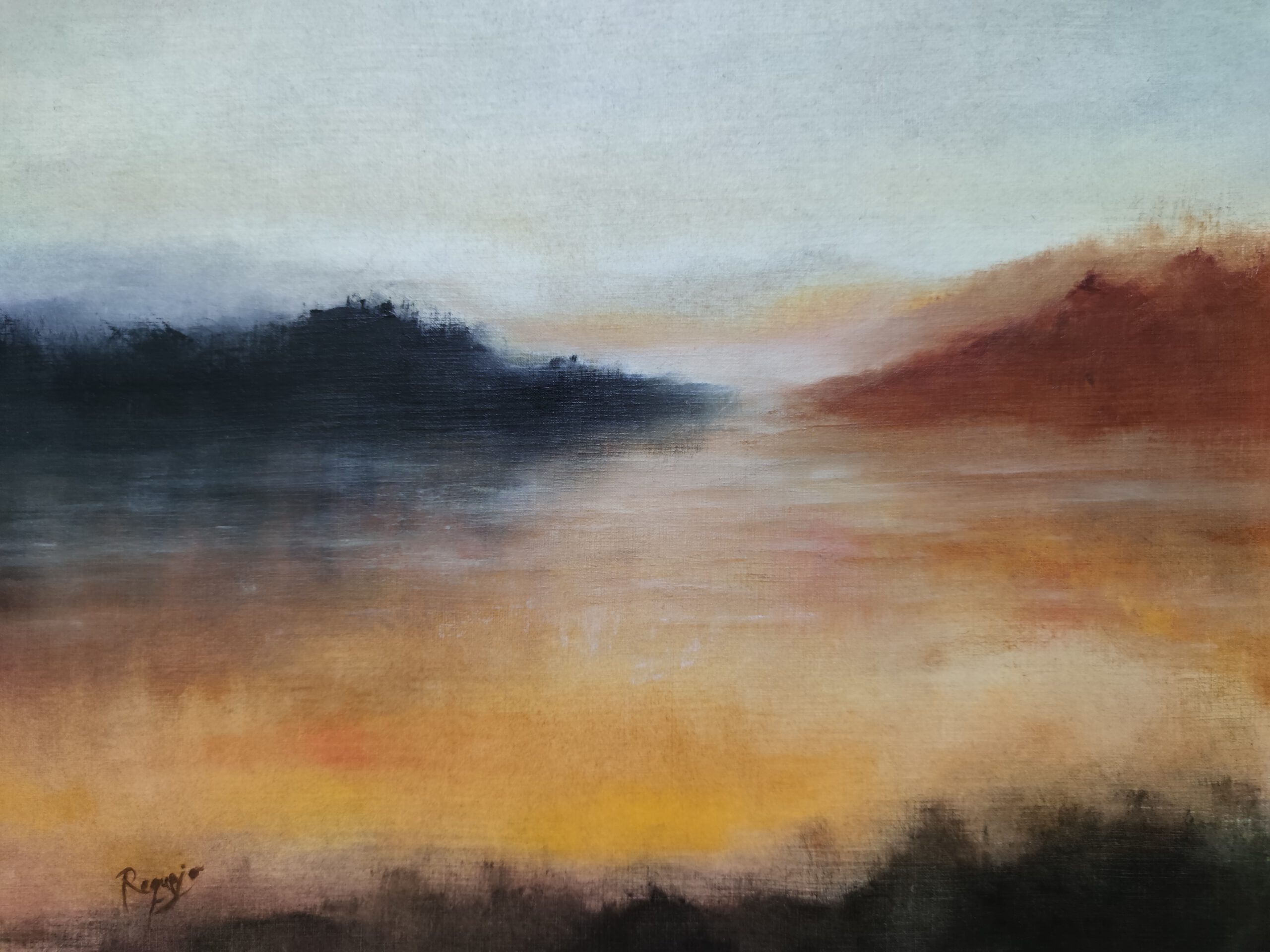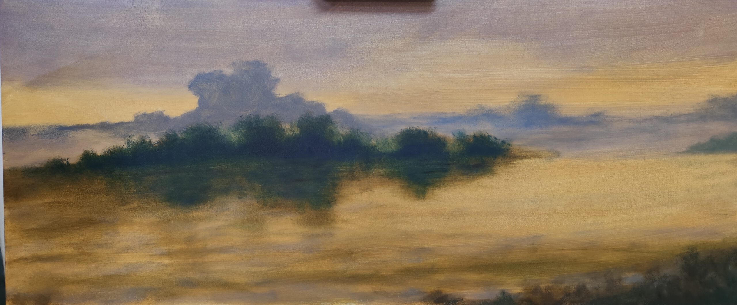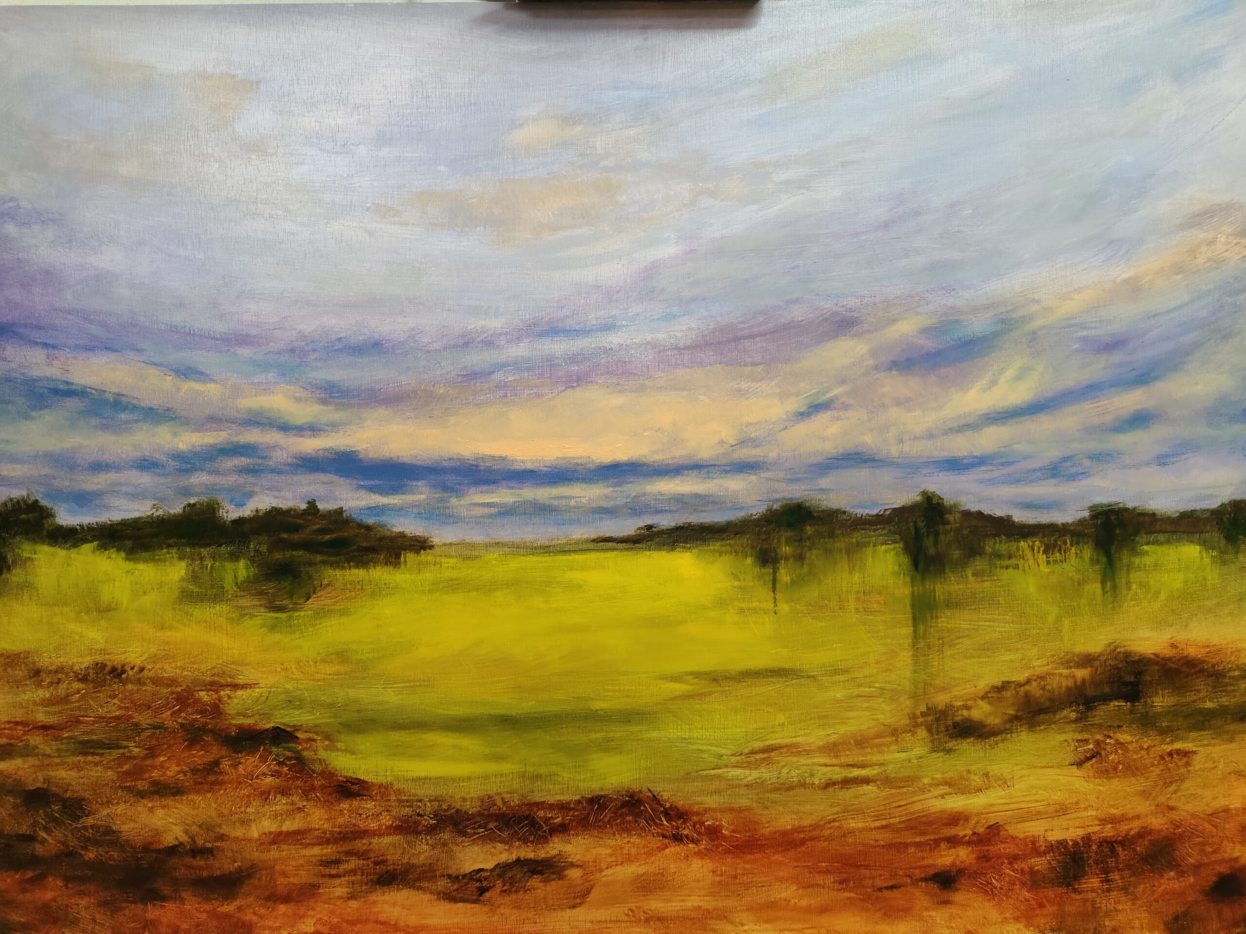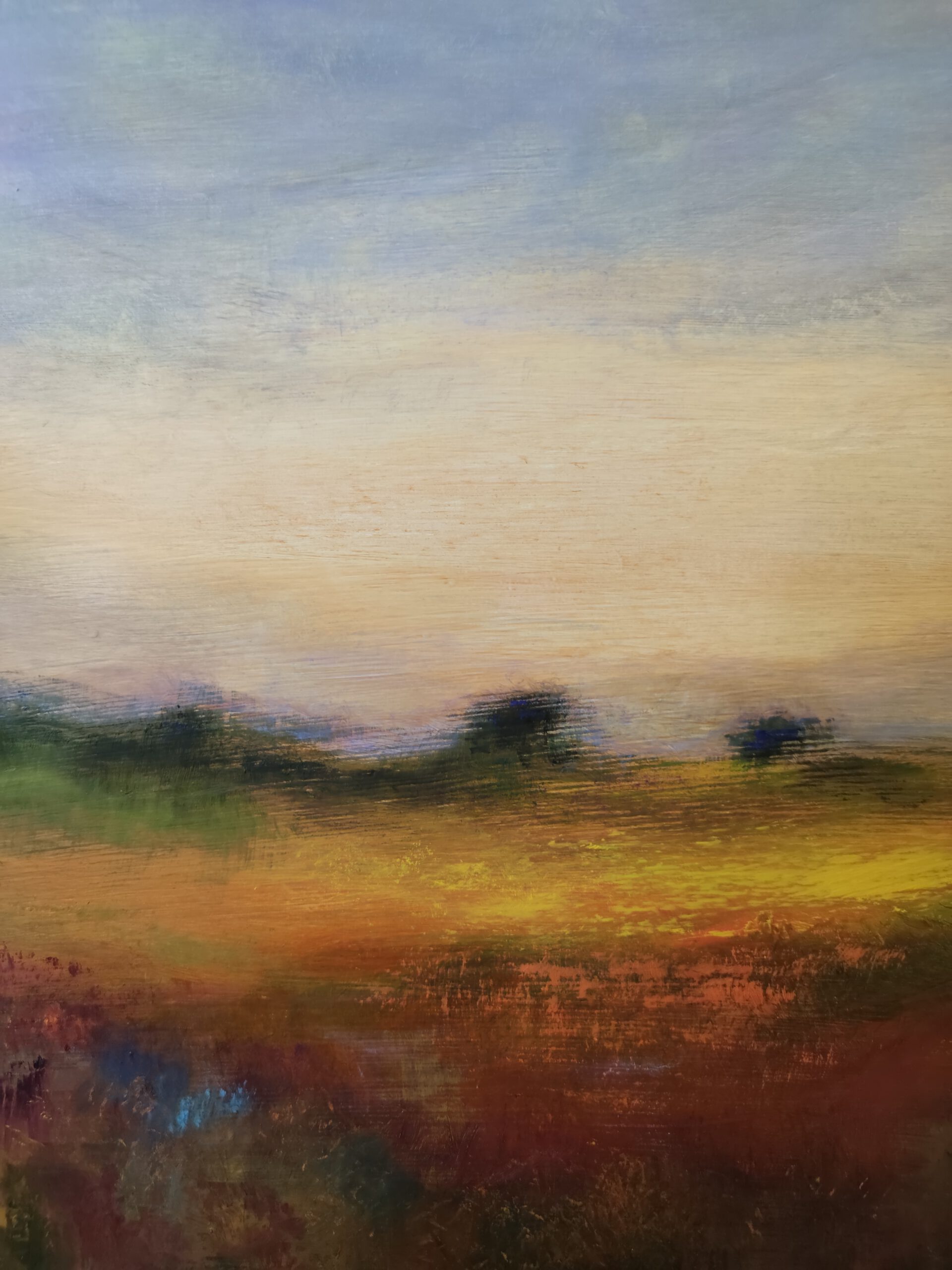 Atardecer sobre campo. Semiabstracto.